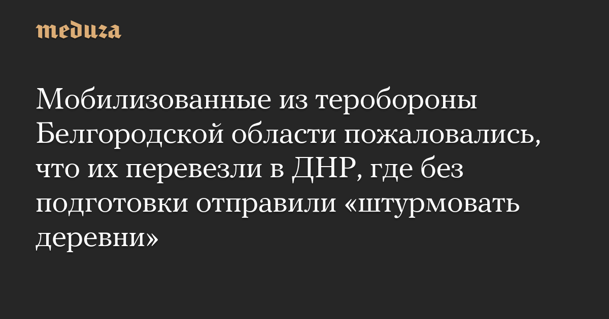 Мобилизованные из теробороны Белгородской области пожаловались, что их перевезли в ДНР, где без подготовки отправили «штурмовать деревни»
