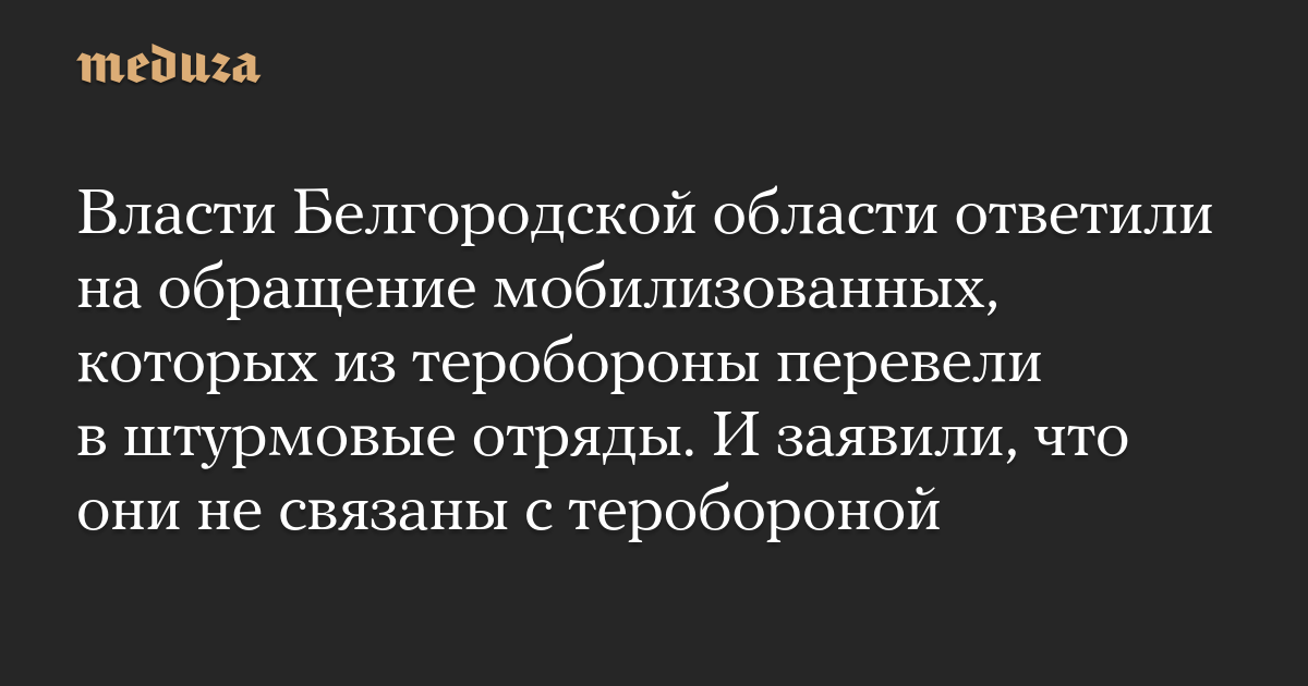 Власти Белгородской области ответили на обращение мобилизованных, которых из теробороны перевели в штурмовые отряды. И заявили, что они не связаны с теробороной