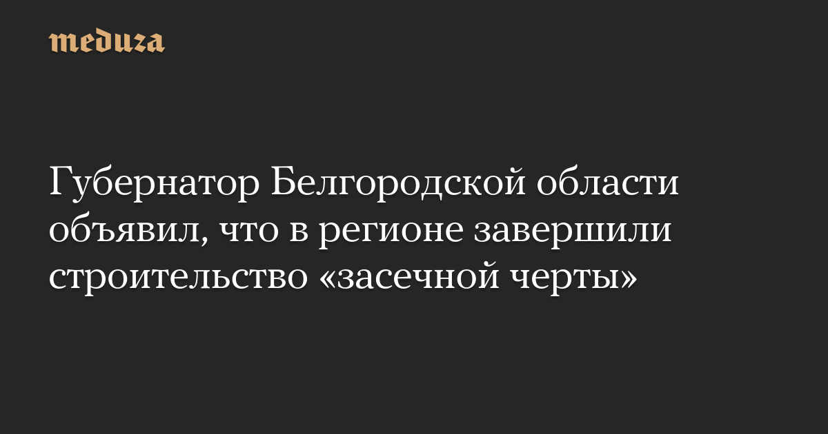Губернатор Белгородской области объявил, что в регионе завершили строительство «засечной черты»