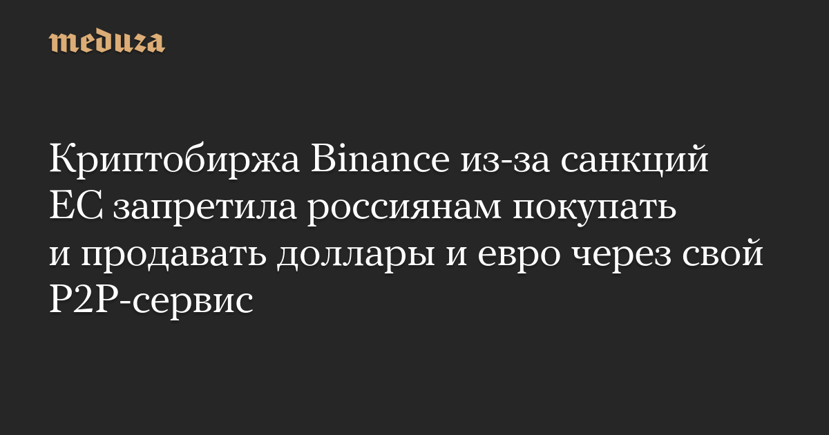 Криптобиржа Binance из-за санкций ЕС запретила россиянам покупать и продавать доллары и евро через свой P2P-сервис