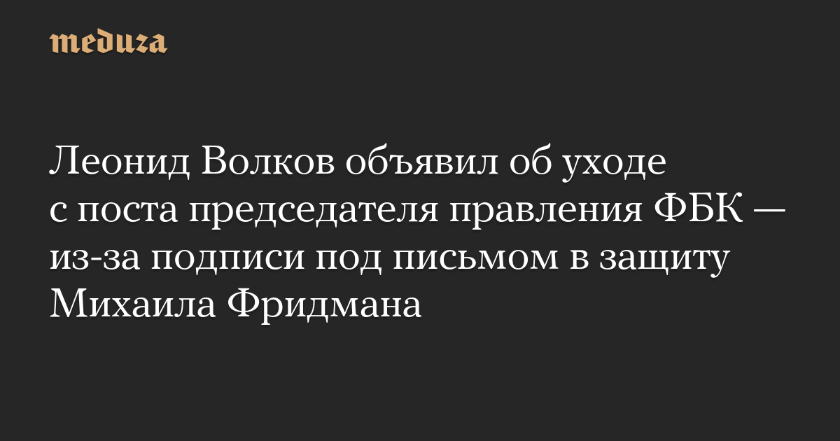 Леонид Волков объявил об уходе с поста председателя правления ФБК — из-за подписи под письмом в защиту Михаила Фридмана