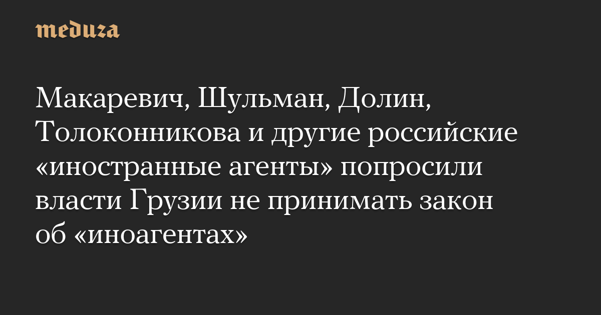 Макаревич, Шульман, Долин, Толоконникова и другие российские «иностранные агенты» попросили власти Грузии не принимать закон об «иноагентах»