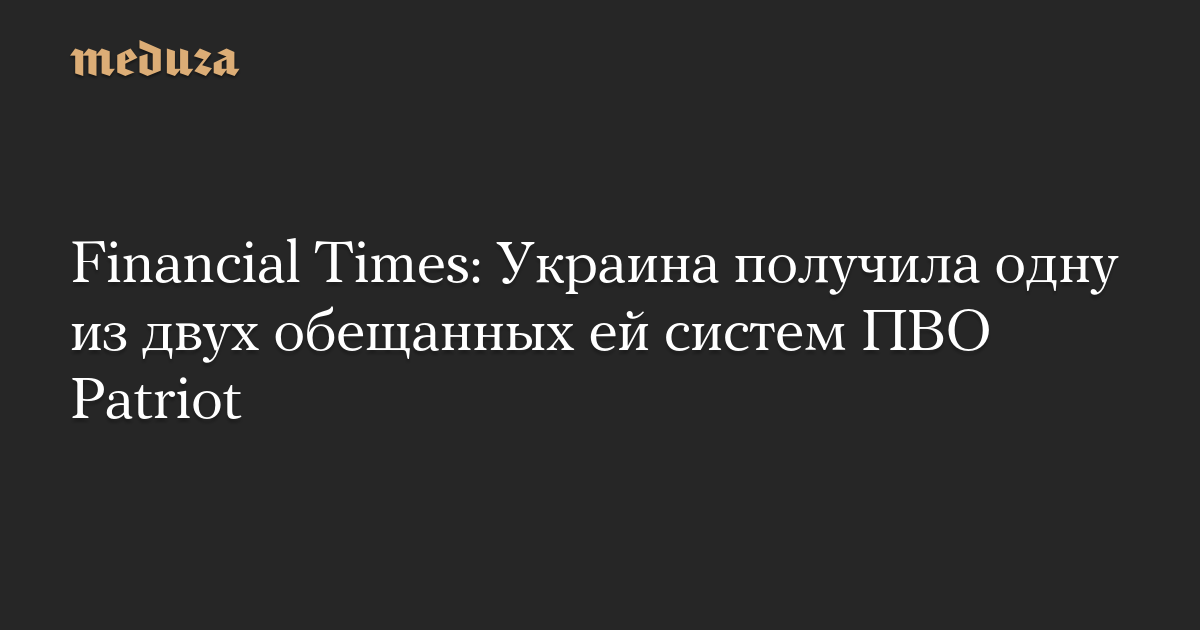 Financial Times: Украина получила одну из двух обещанных ей систем ПВО Patriot