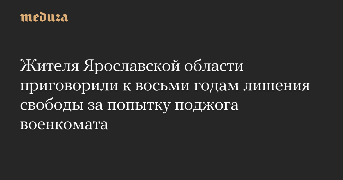 Жителя Ярославской области приговорили к восьми годам лишения свободы за попытку поджога военкомата