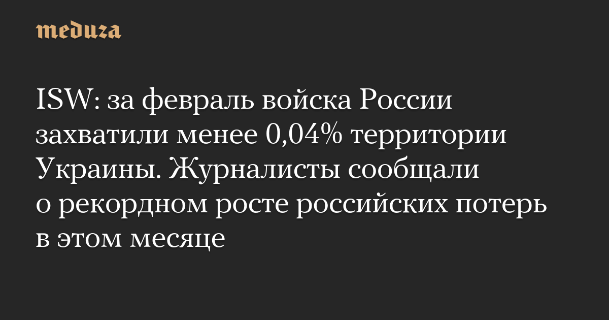 ISW: за февраль войска России захватили менее 0,04% территории Украины. Журналисты сообщали о рекордном росте российских потерь в этом месяце