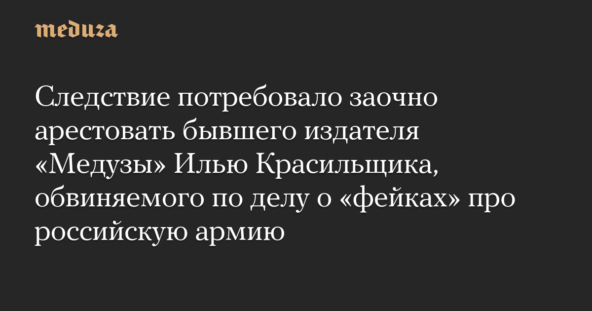 Следствие направило в суд ходатайство о заочном аресте бывшего издателя «Медузы» Ильи Красильщика. Его обвиняют в «распространении фейков» про вооруженные силы РФ за пост в инстаграме об убийстве мирных жителей в Буче Киевской области.