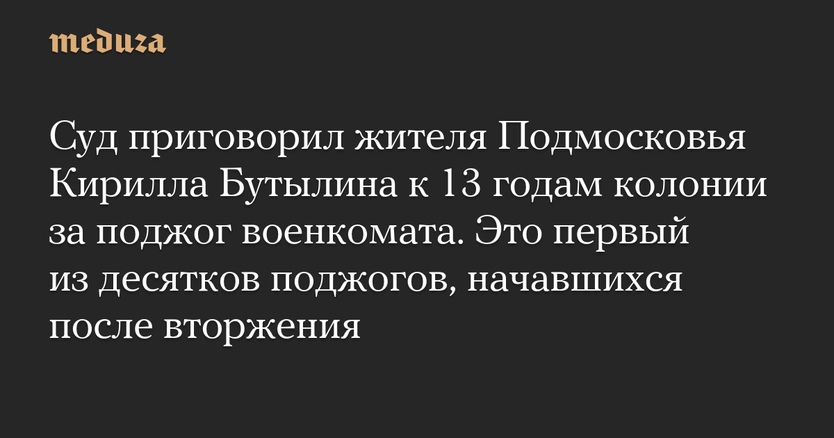 Суд приговорил жителя Подмосковья Кирилла Бутылина к 13 годам колонии за поджог военкомата. Это первый из десятков поджогов, начавшихся после вторжения