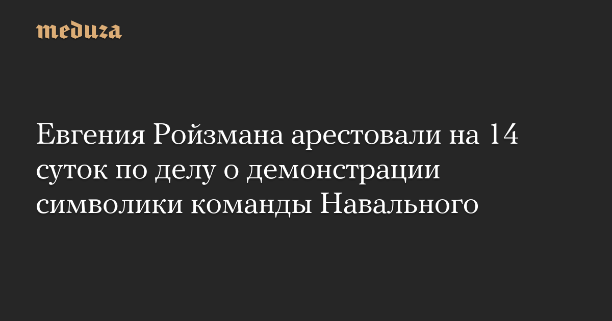 Евгения Ройзмана арестовали на 14 суток по делу о демонстрации символики команды Навального