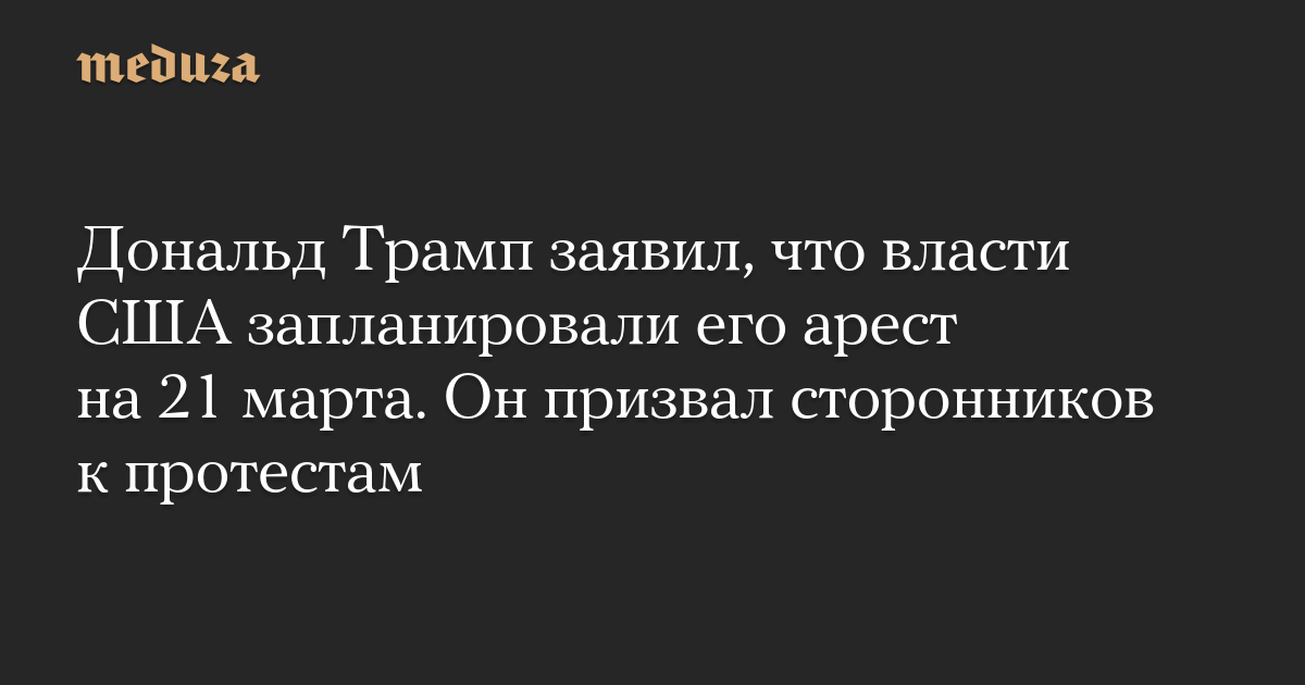 Дональд Трамп заявил, что власти США запланировали его арест на 21 марта. Он призвал сторонников к протестам