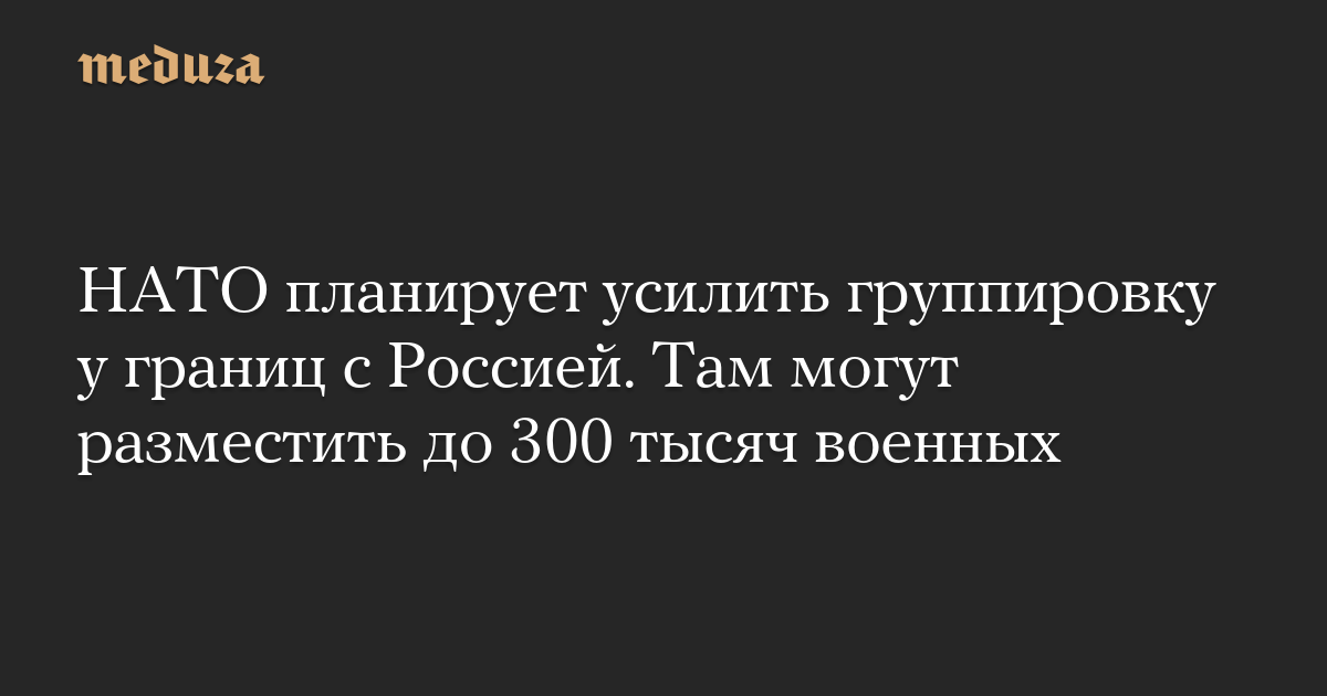 По данным Politico, чиновники НАТО выдвигают идею о размещении на восточных границах группировки в 300 тысяч военных.