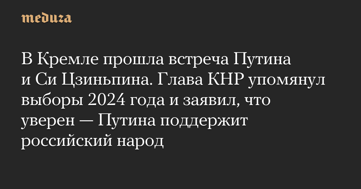 В Кремле прошла встреча Путина и Си Цзиньпина. Глава КНР упомянул выборы 2024 года и заявил, что уверен — Путина поддержит российский народ