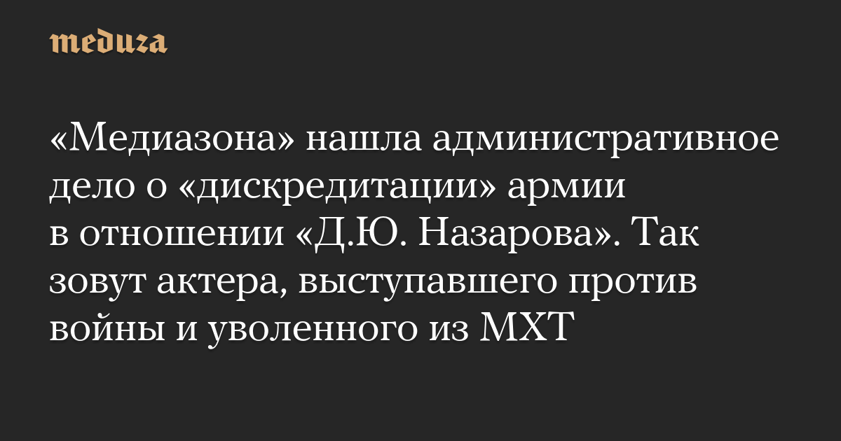«Медиазона» нашла административное дело о «дискредитации» армии в отношении «Д.Ю. Назарова». Так зовут актера, выступавшего против войны и уволенного из МХТ