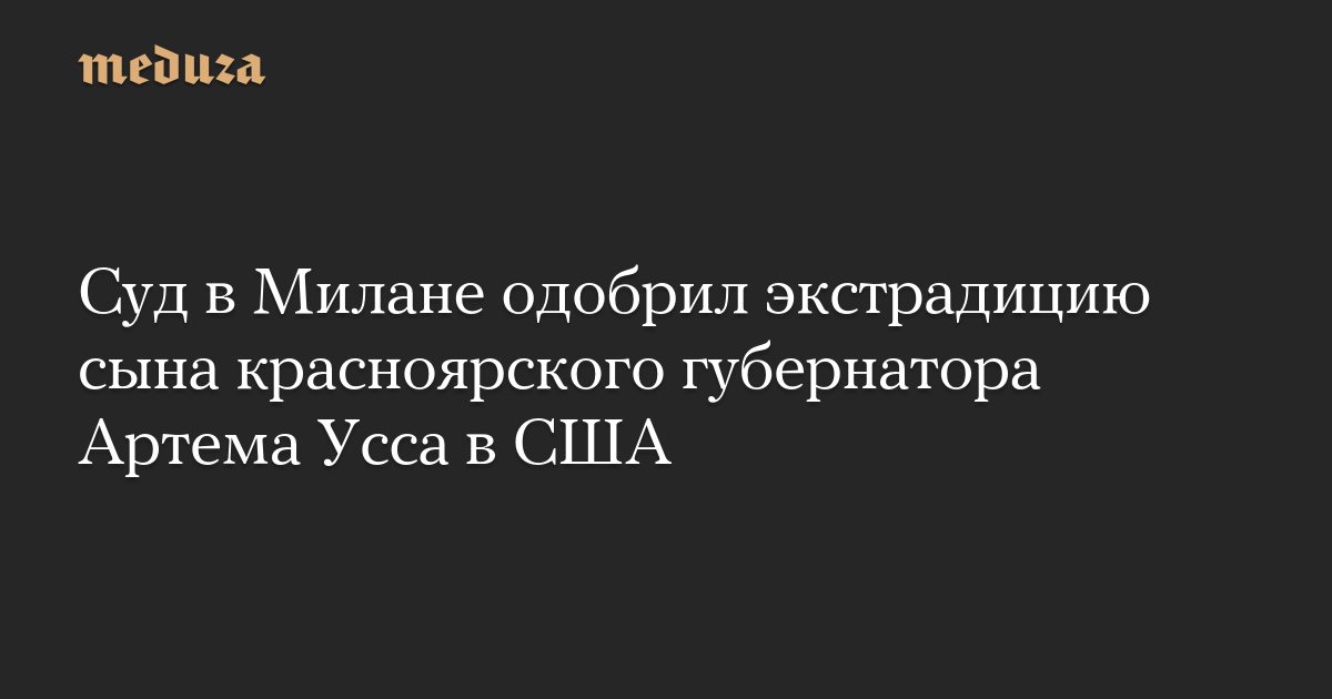 Апелляционный суд Милана одобрил экстрадицию в США сына губернатора Красноярского края Артема Усса. Об этом сообщает La Repubblica.