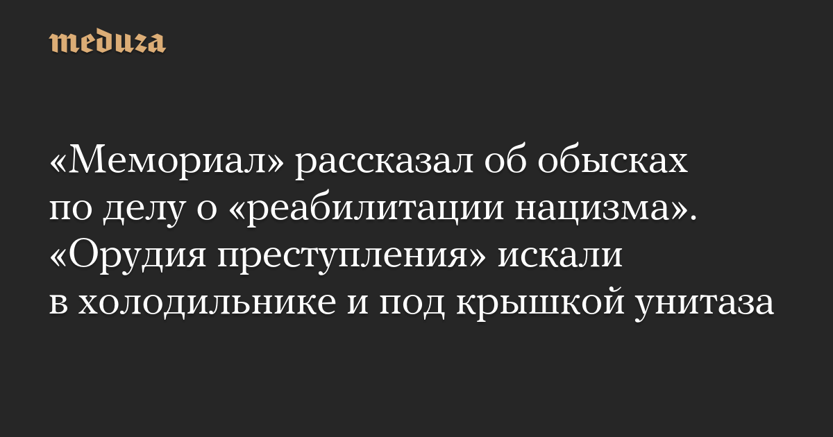 «Мемориал» рассказал об обысках по делу о «реабилитации нацизма». «Орудия преступления» искали в холодильнике и под крышкой унитаза