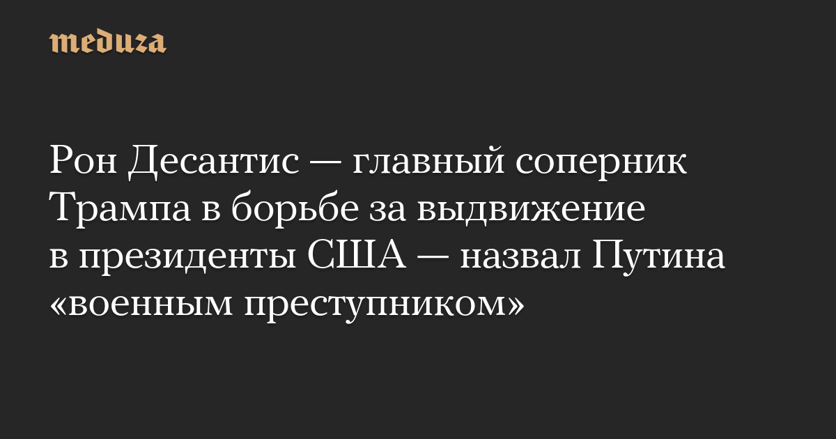 Рон Десантис — главный соперник Трампа в борьбе за выдвижение в президенты США — назвал Путина «военным преступником»