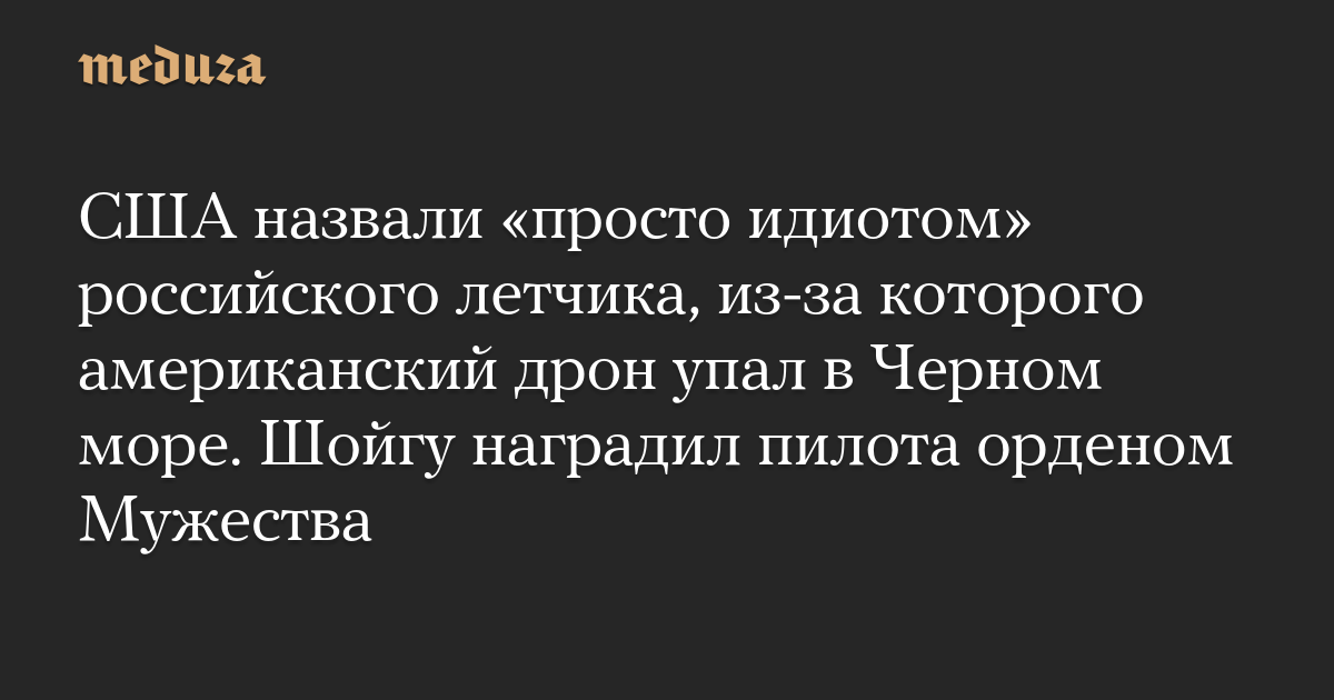 США назвали «просто идиотом» российского летчика, из-за которого американский дрон упал в Черном море. Шойгу наградил пилота орденом Мужества