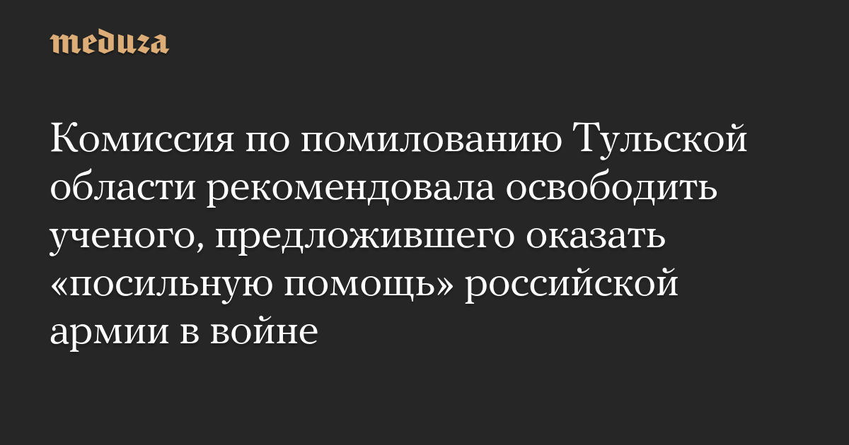 Комиссия по помилованию Тульской области рекомендовала освободить ученого, предложившего оказать «посильную помощь» российской армии в войне