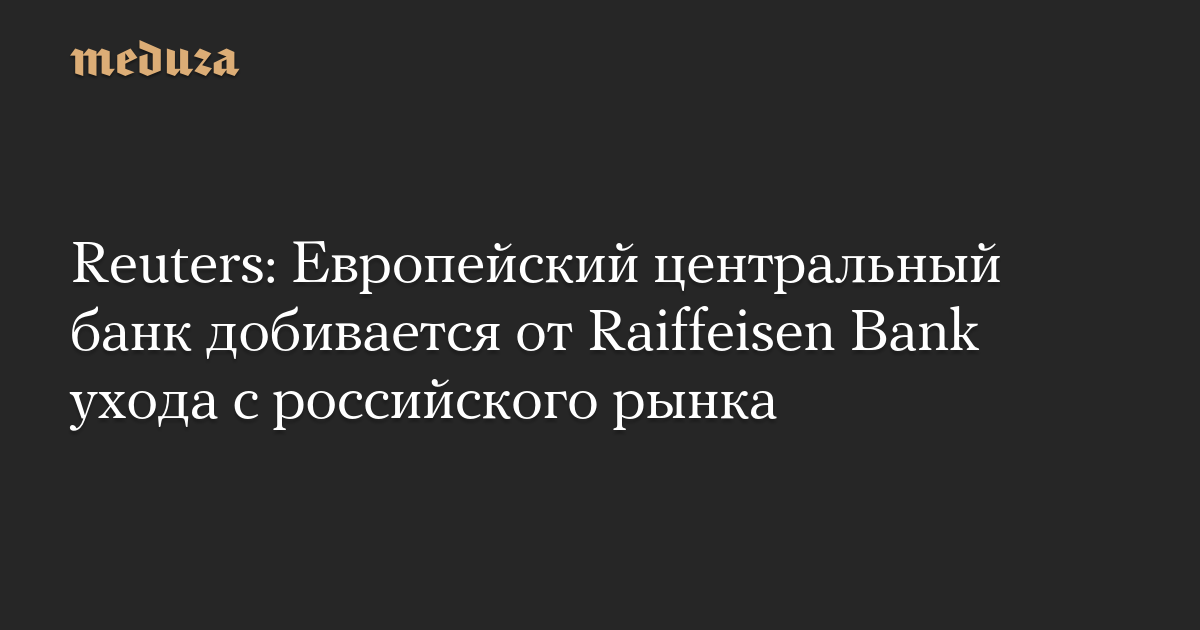 Европейский центральный банк (ЕЦБ) потребовал от австрийской банковской группы Raiffeisen Bank International (RBI) закрыть свой бизнес в России, сообщает Reuters со ссылкой на свои источники.