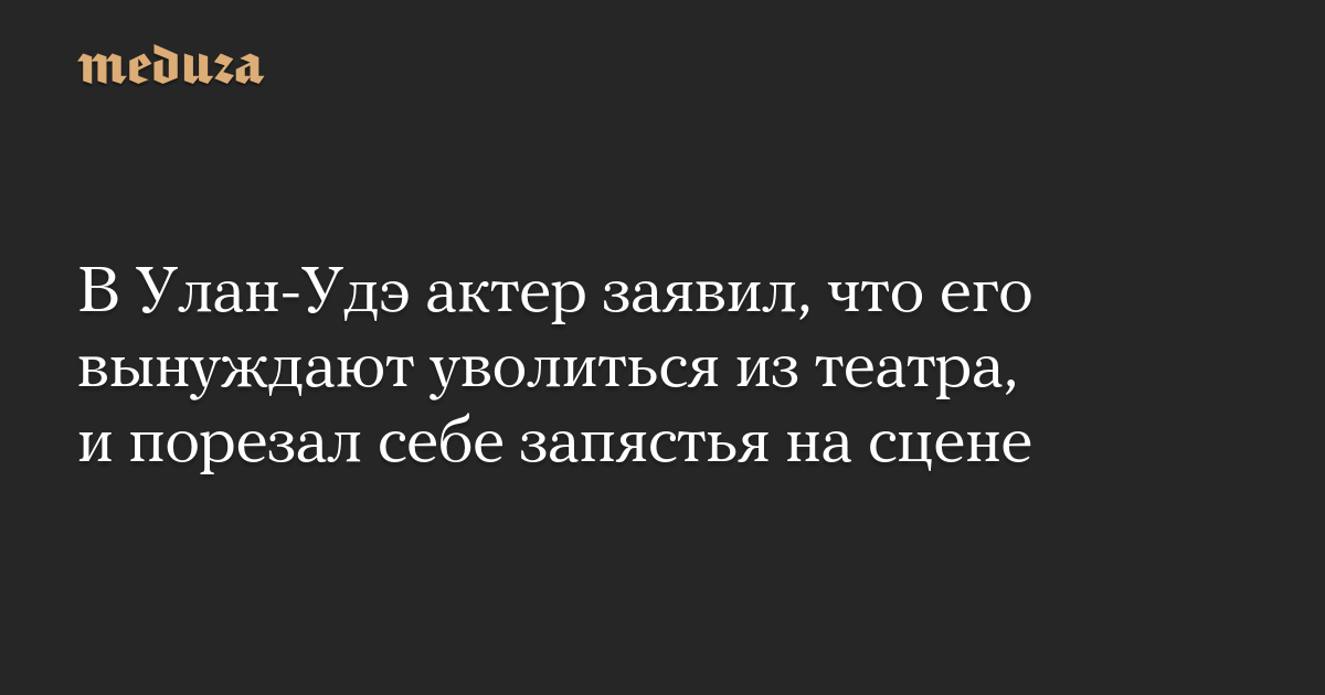 Актер Русского драматического театра в Улан-Удэ Артур Шувалов заявил со сцены, что на него оказывают давление и пытаются уволить, после чего порезал себе запястья, сообщает «Сибирь.Реалии». Инцидент произошел 29 марта по окончании спектакля «Театр. Изнанка», когда артисты вышли на поклон.