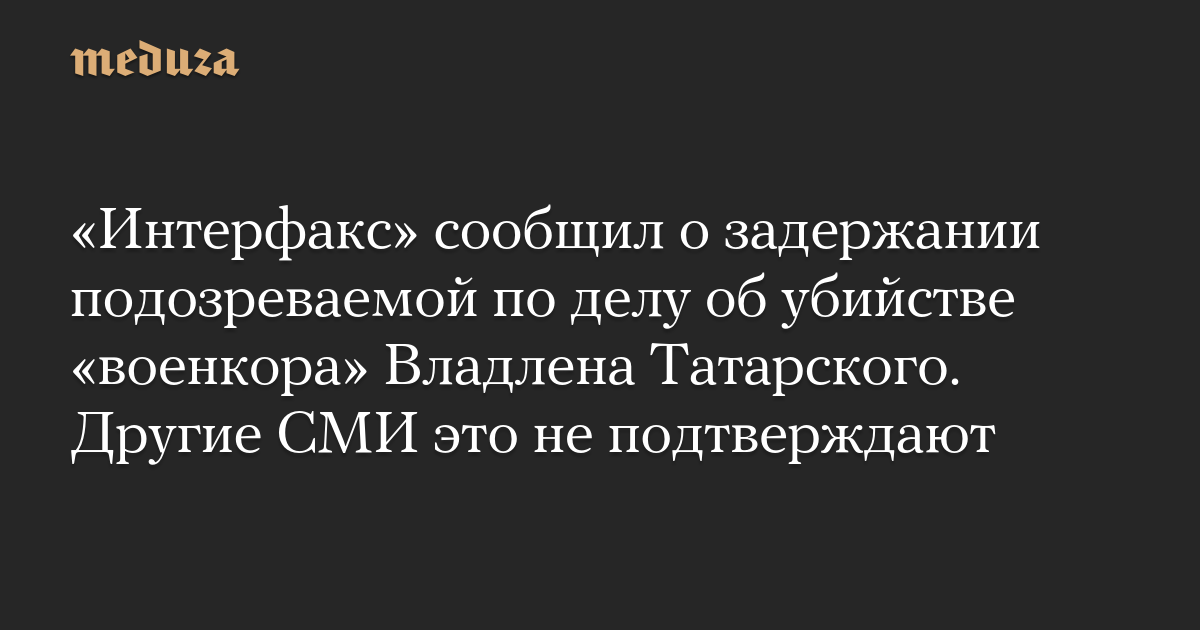 «Интерфакс» сообщил о задержании подозреваемой по делу об убийстве «военкора» Владлена Татарского. Другие СМИ это не подтверждают