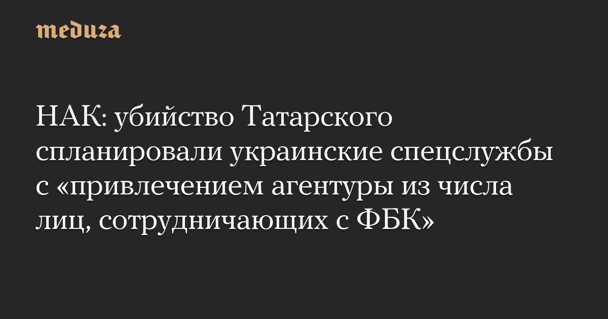 НАК: убийство Татарского спланировали украинские спецслужбы с «привлечением агентуры из числа лиц, сотрудничающих с ФБК»