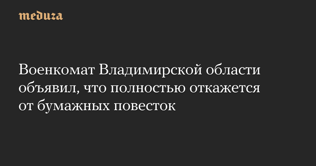 Военкомат Владимирской области объявил, что полностью откажется от бумажных повесток