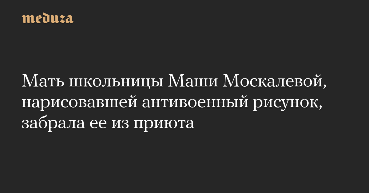 Мать школьницы Маши Москалевой, нарисовавшей антивоенный рисунок, забрала ее из приюта