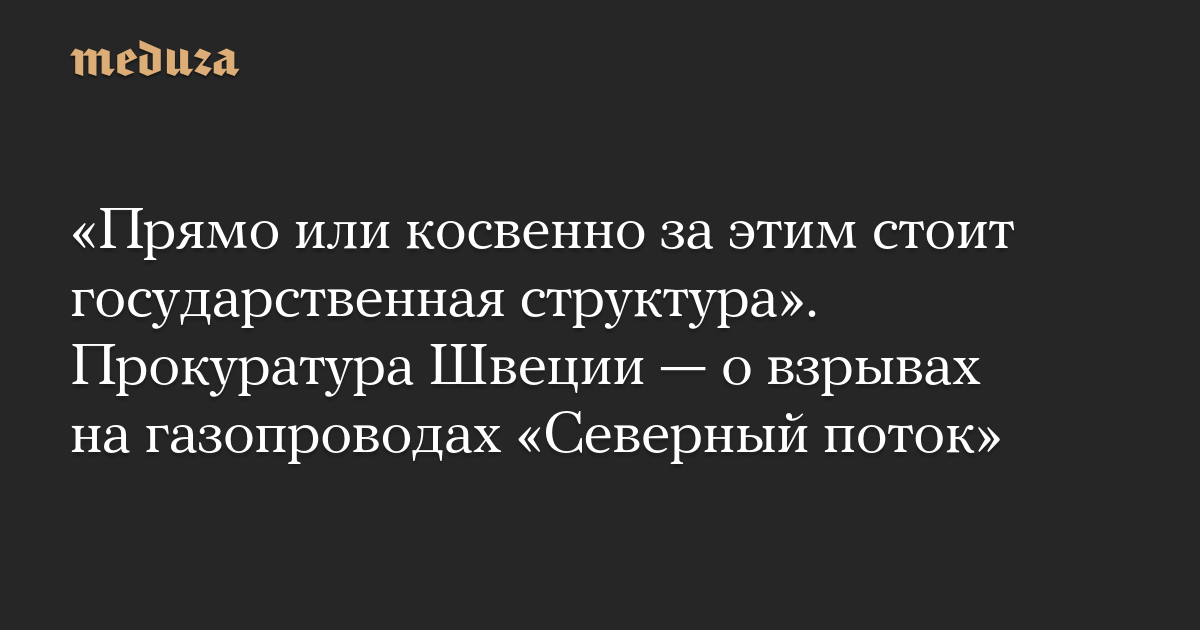 Шведский прокурор Матс Юнгквист, расследующий дело о взрывах на газопроводах системы «Северный поток», заявил Reuters, что, согласно приоритетной версии следствия, за атакой стоит государственная структура.