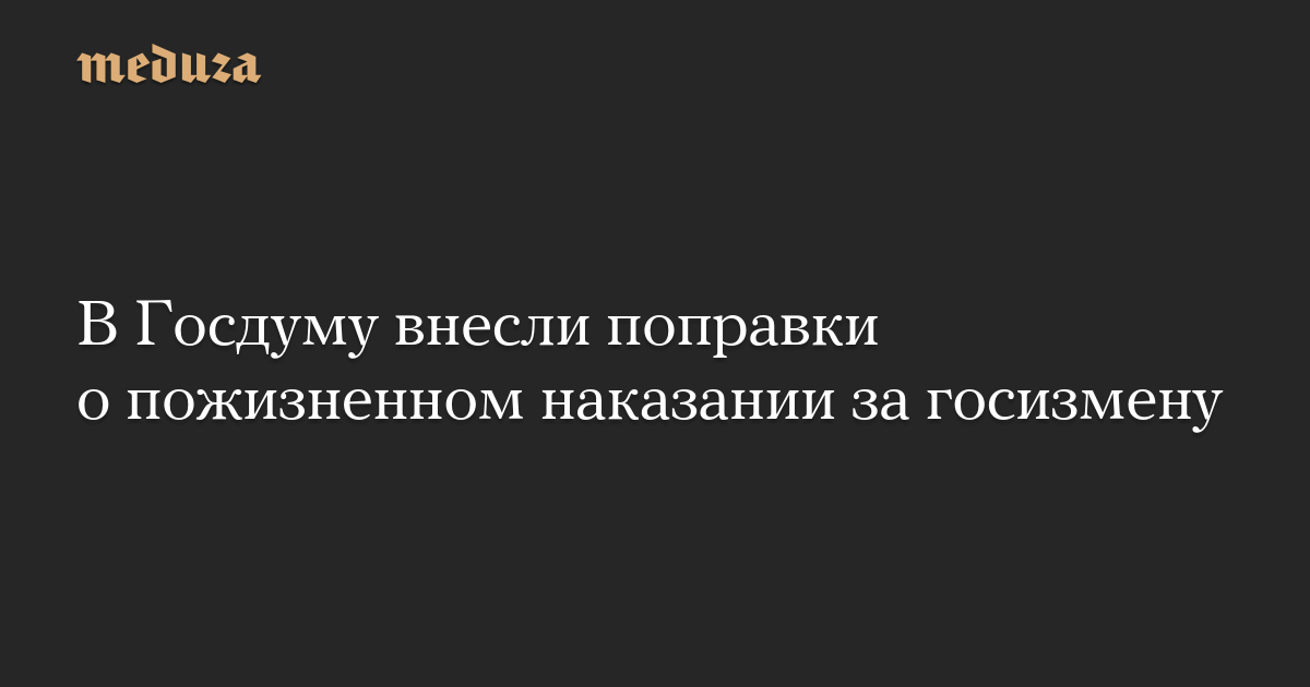 В Госдуму внесли поправки о пожизненном наказании за госизмену