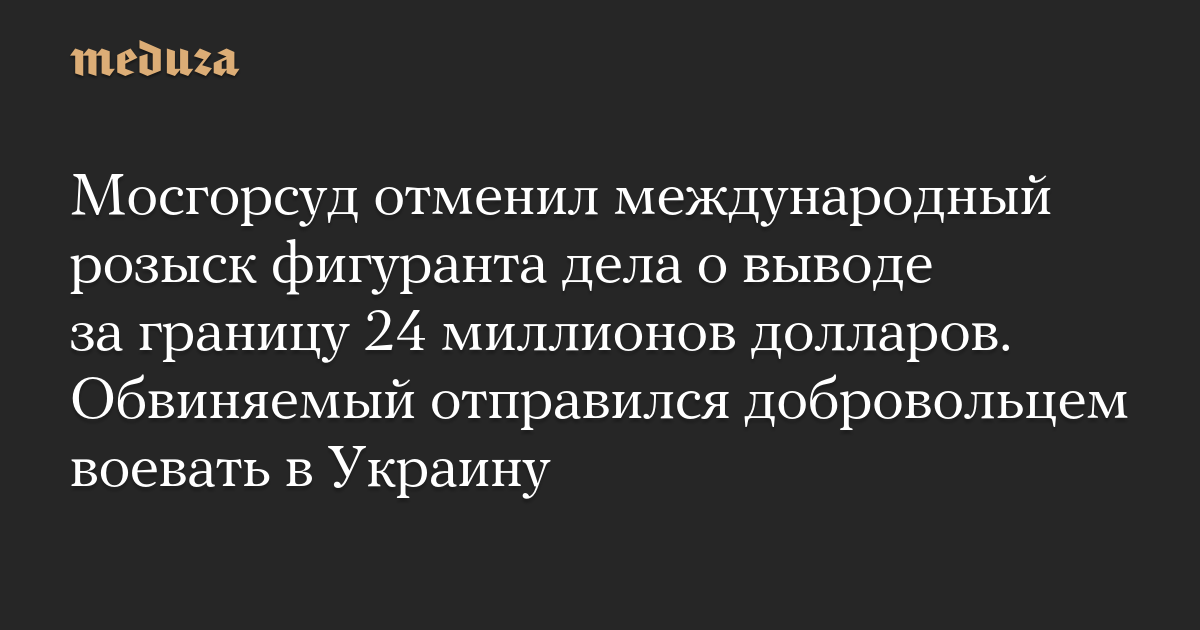 Мосгорсуд отменил международный розыск фигуранта дела о выводе за границу 24 миллионов долларов. Обвиняемый отправился добровольцем воевать в Украину