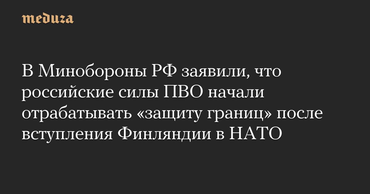 В Минобороны РФ заявили, что российские силы ПВО начали отрабатывать «защиту границ» после вступления Финляндии в НАТО