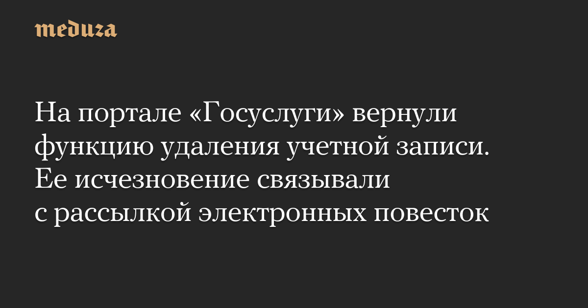 На портале «Госуслуги» вернули функцию удаления учетной записи. Ее исчезновение связывали с рассылкой электронных повесток