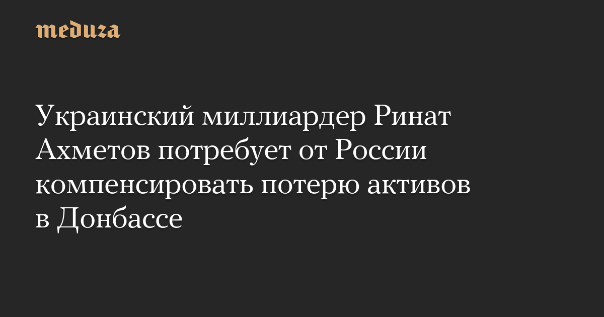 Украинский миллиардер Ринат Ахметов потребует от России компенсировать потерю активов в Донбассе