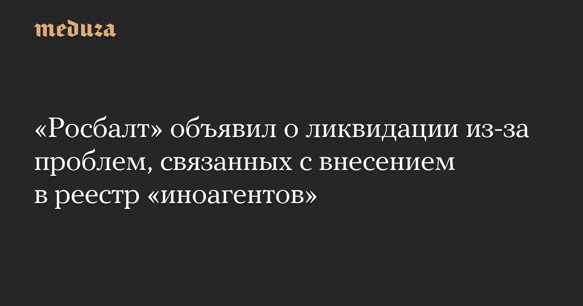 «Росбалт» объявил о ликвидации из-за проблем, связанных с внесением в реестр «иноагентов»
