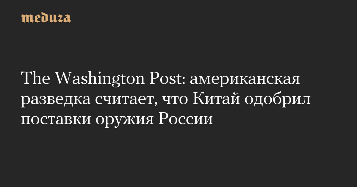 The Washington Post: американская разведка считает, что Китай одобрил поставки оружия России