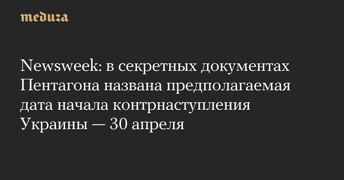 Newsweek: в секретных документах Пентагона названа предполагаемая дата начала контрнаступления Украины — 30 апреля