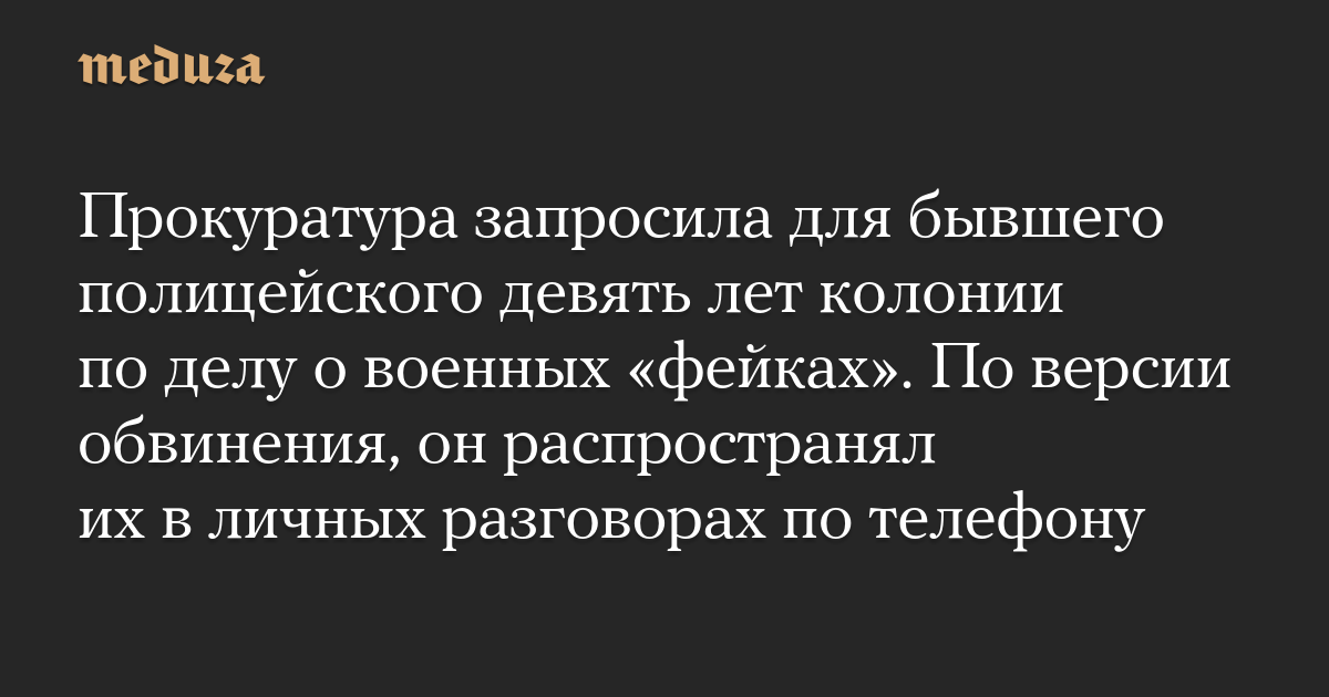 Прокуратура запросила для бывшего полицейского девять лет колонии по делу о военных «фейках». По версии обвинения, он распространял их в личных разговорах по телефону