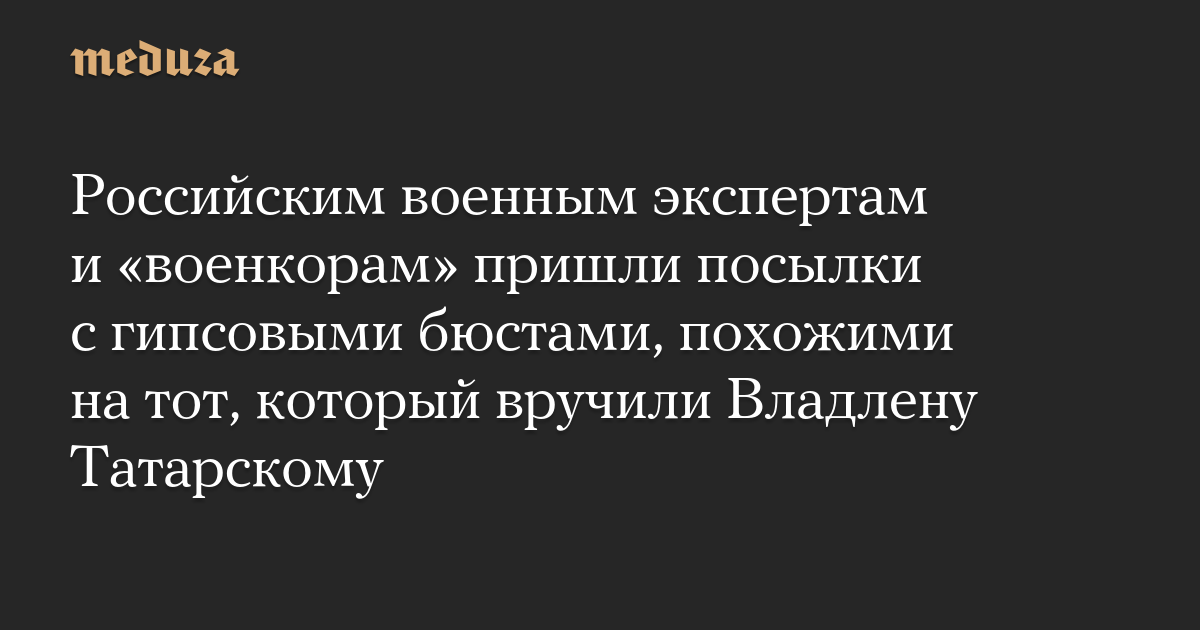 Российским военным экспертам и «военкорам» пришли посылки с гипсовыми бюстами, похожими на тот, который вручили Владлену Татарскому