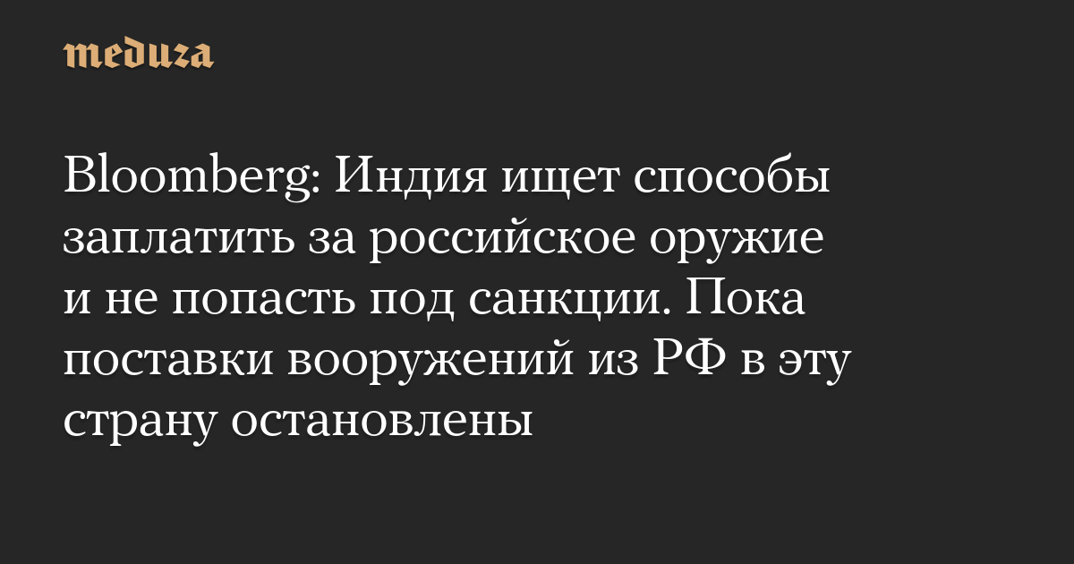 Bloomberg: Индия ищет способы заплатить за российское оружие и не попасть под санкции. Пока поставки вооружений из РФ в эту страну остановлены