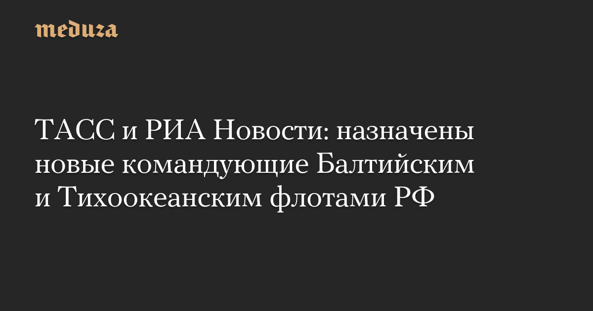 ТАСС и РИА Новости: назначены новые командующие Балтийским и Тихоокеанским флотами РФ