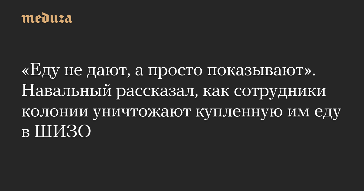 Сотрудники ИК-6 во Владимирской области, где отбывает наказание политик Алексей Навальный, начали уничтожать купленную им еду в дни его нахождения в штрафном изоляторе (ШИЗО). Пост об этом опубликован в соцсетях Навального.