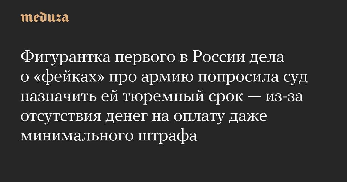 Фигурантка первого в России дела о «фейках» про армию попросила суд назначить ей тюремный срок — из-за отсутствия денег на оплату даже минимального штрафа