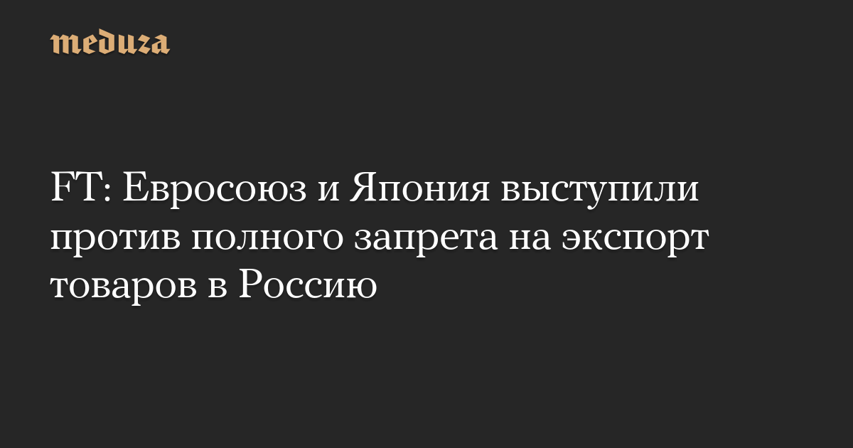 FT: Евросоюз и Япония выступили против полного запрета на экспорт товаров в Россию