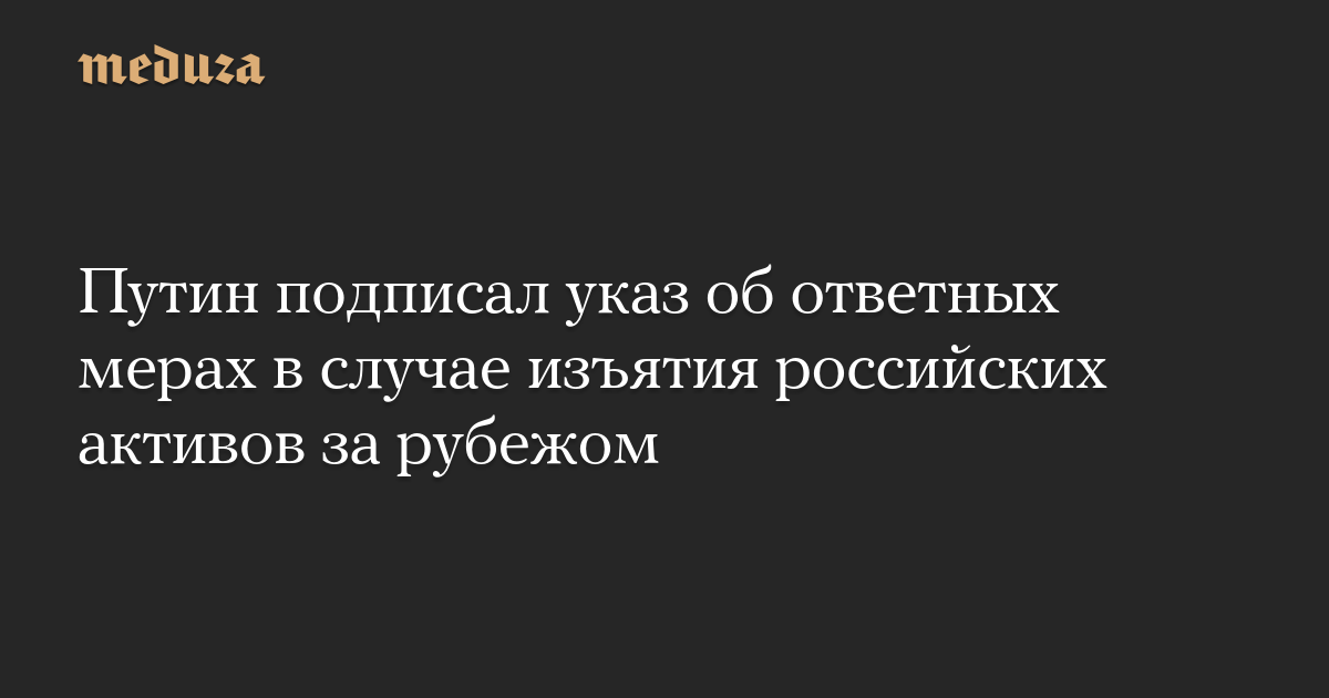 Путин подписал указ об ответных мерах в случае изъятия российских активов за рубежом