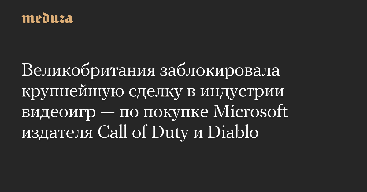 Великобритания заблокировала крупнейшую сделку в индустрии видеоигр — по покупке Microsoft издателя Call of Duty и Diablo