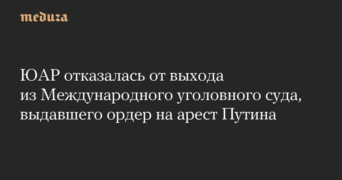 ЮАР отказалась от выхода из Международного уголовного суда, выдавшего ордер на арест Путина