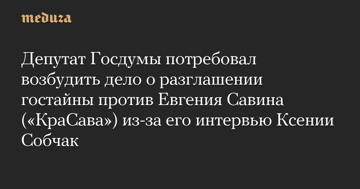 Депутат Госдумы потребовал возбудить дело о разглашении гостайны против Евгения Савина («КраСава») из-за его интервью Ксении Собчак