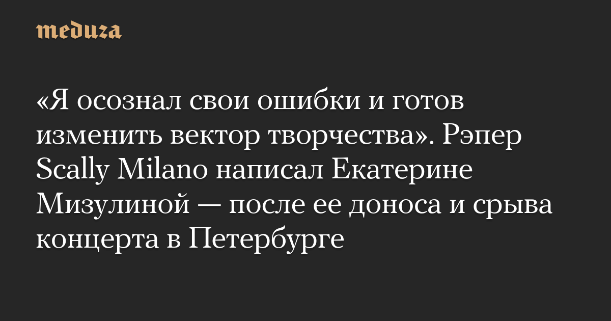 «Я осознал свои ошибки и готов изменить вектор творчества». Рэпер Scally Milano написал Екатерине Мизулиной — после ее доноса и срыва концерта в Петербурге