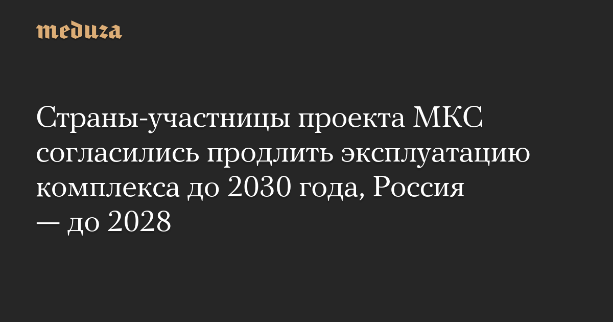 Страны-участницы проекта МКС согласились продлить эксплуатацию комплекса до 2030 года, Россия — до 2028