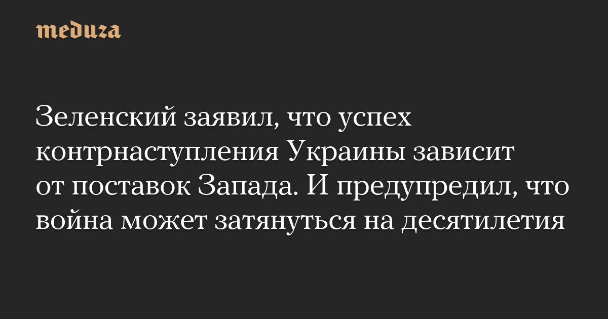 Зеленский заявил, что успех контрнаступления Украины зависит от поставок Запада. И предупредил, что война может затянуться на десятилетия